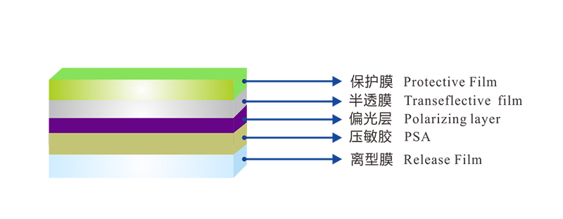Used as the bottom polarizer for transflective black and white LCD display. It can reflect part of the ambient light as a light source in the bright environment , and can partially transmit light as a light source in the dark environment .