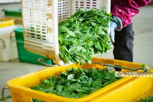 12月15日,贺州市八步区铺门镇,贺州农投供港蔬菜基地里一派繁忙。百余名工人腰系竹筐、头戴草帽,俯身于连片豆杯田间。指尖轻拨叶隙,“咔嗒”的脆响不时传来——一根根新鲜豆杯被精准掐下。冬日暖阳散落,映照出一幅生动的丰盈图景。图为豆杯进行入库前称重。记者 陆奕江 摄(广西云-广西日报)